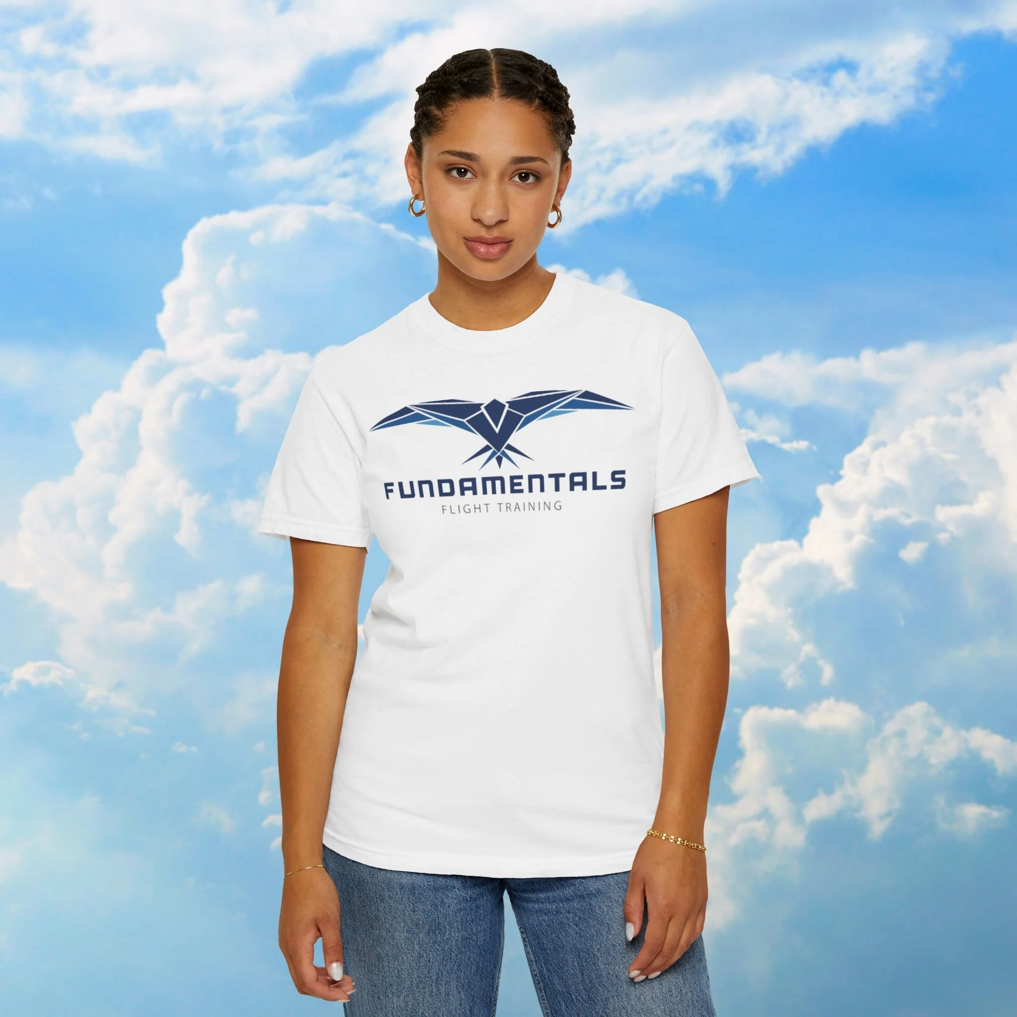 Elevate your everyday look with the light-colored version of our signature Fundamentals Logo T-Shirt. Designed for comfort and confidence, this tee features a soft, breathable fabric and a clean, minimal design that pairs effortlessly with any outfit. The subtle tones highlight the bold Fundamentals logo, representing strength, style, and your passion for aviation. Whether you're flying, studying, or just hanging out, this shirt keeps your style grounded and your spirit soaring.