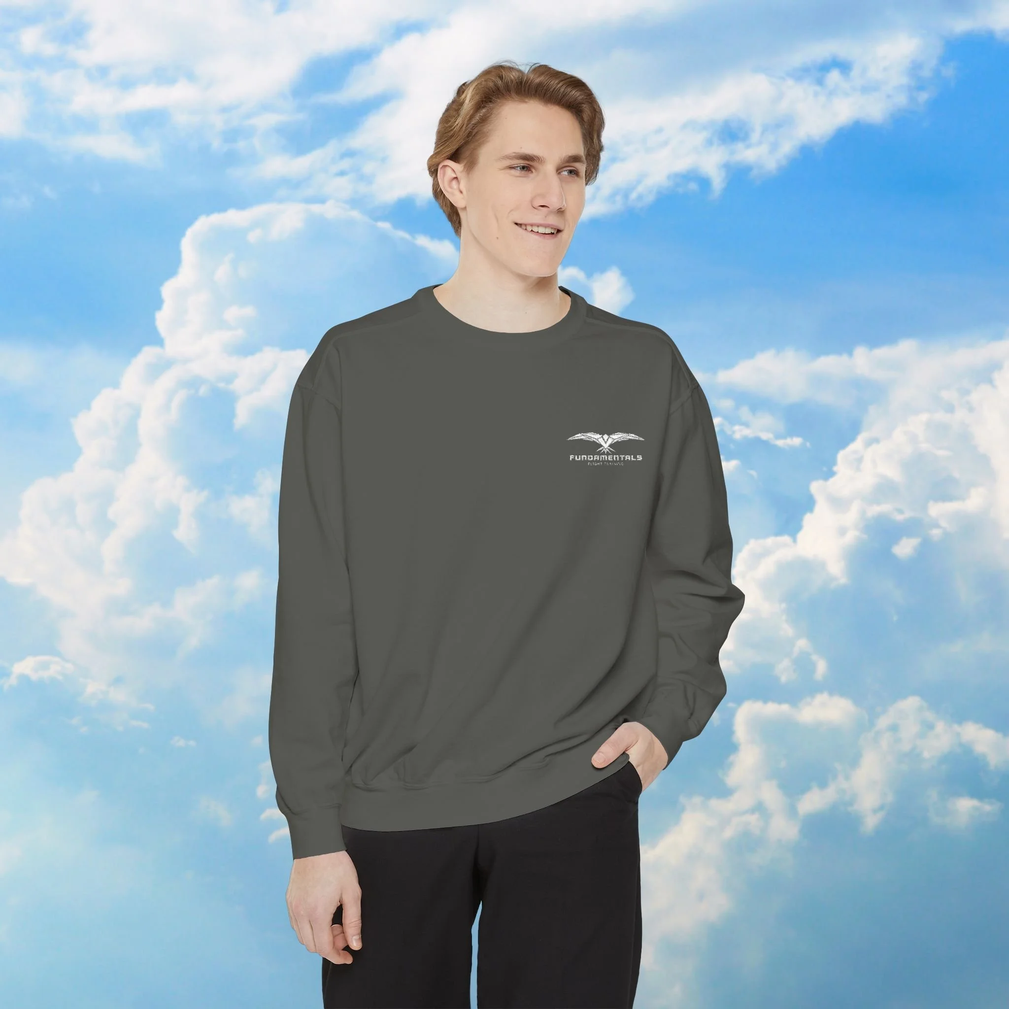 Take comfort to cruising altitude with the Fundamentals Embroidered Sweatshirt. Designed for aviators, students, and sky dreamers alike, this unisex garment-dyed sweatshirt blends laid-back style with aviation pride. Whether you're studying airspace regs, hanging out in the FBO, or just enjoying a chilly day off, this sweatshirt is the go-to layer that keeps you grounded in comfort.